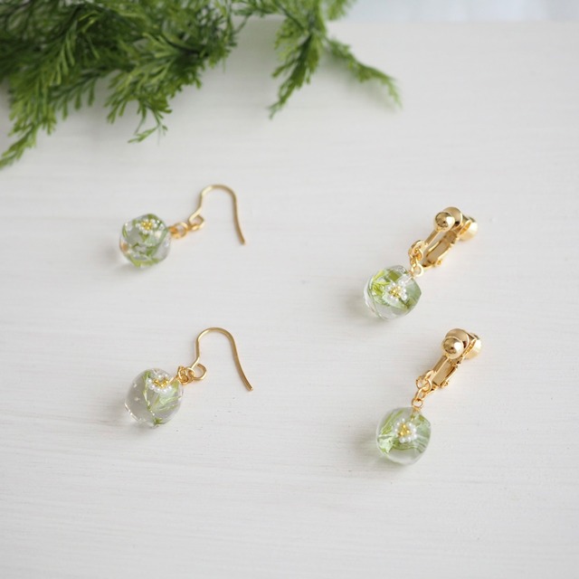 プランツキューブ ピアス/イヤリング -かすみ草-