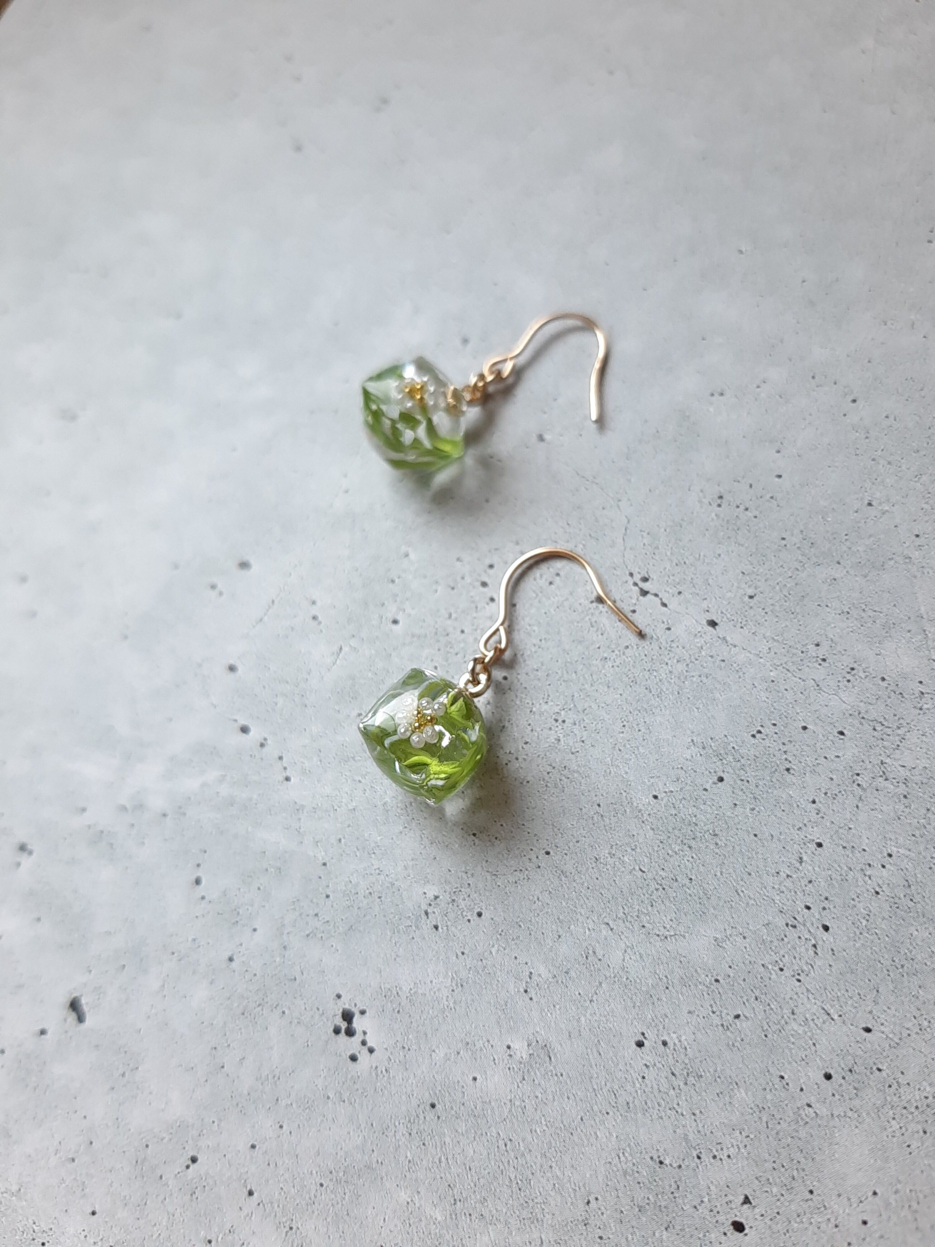 UV樹脂/ドライフラワー/パールビーズ、ゴールドブリオン