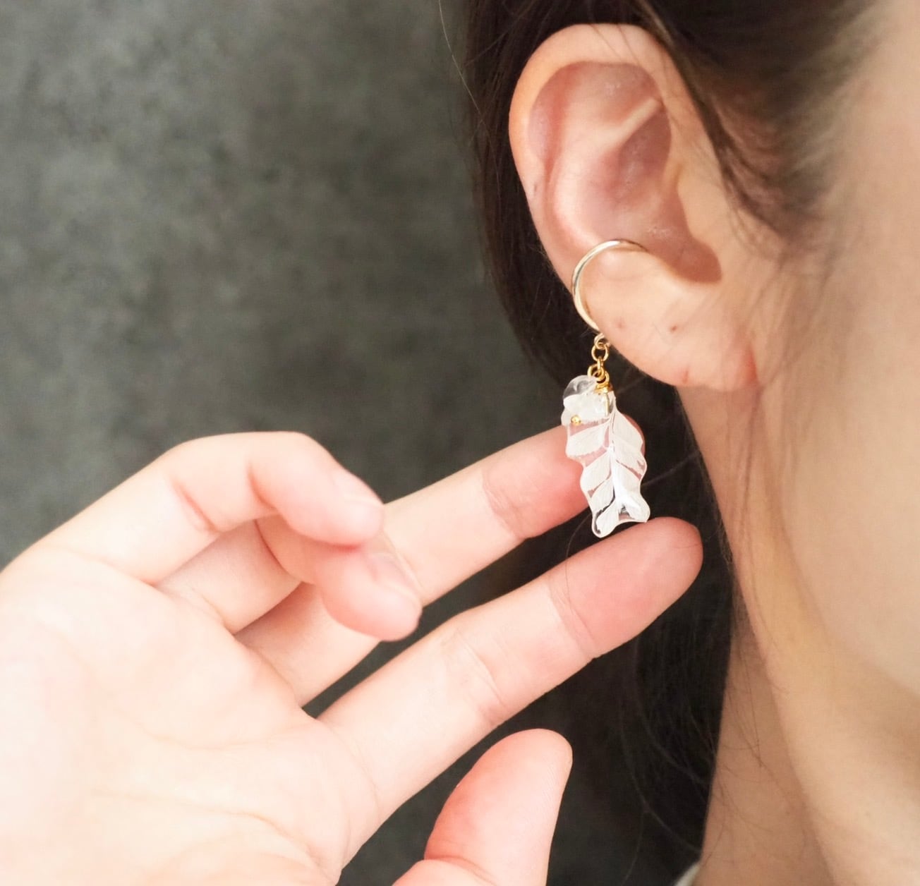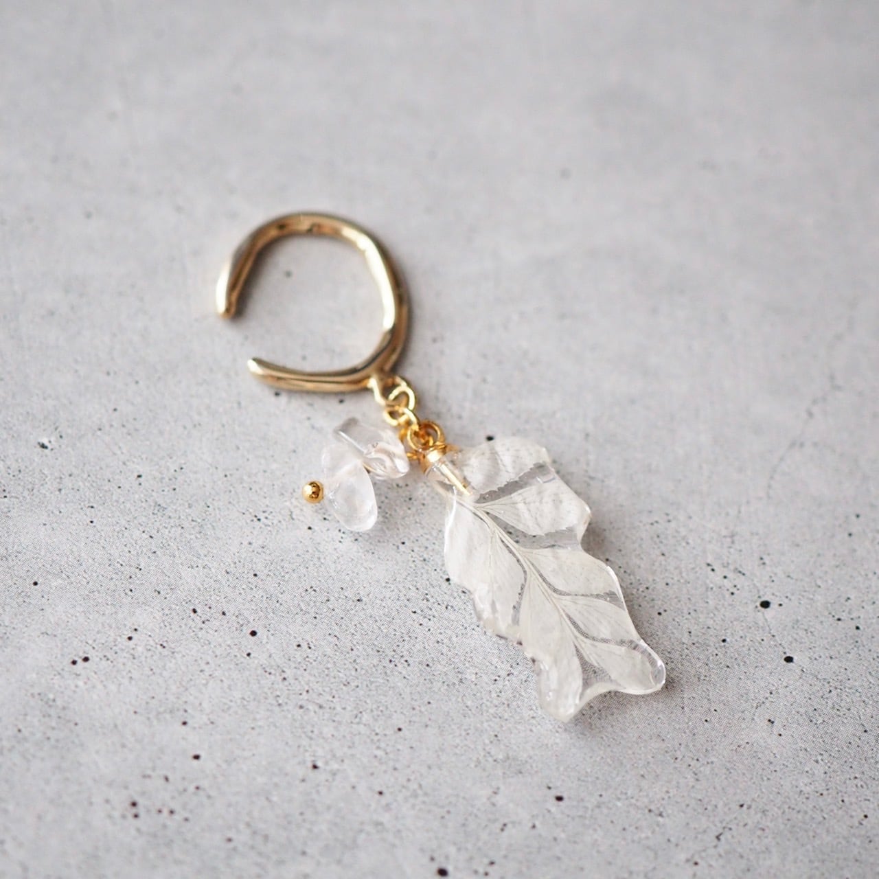 ホワイトリーフのイヤーカフ シダ